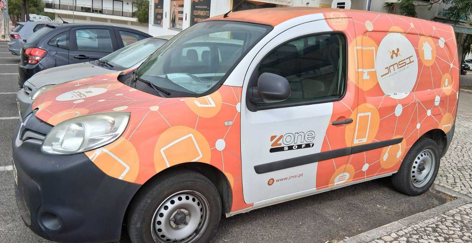 Definimos grelha, área de proteção e dimensões mínimas para assegurar legibilidade em qualquer formato. Estabelecemos paleta (laranjas e cinzento) e comportamentos alternativos para fundos e técnicas distintas, criando um sistema coeso e fácil de aplicar. Construimos artes visuais para cartão de visita, papel timbrado, envelope, vitrine e viaturas prontos a uso e alinhados com a nova linguagem.